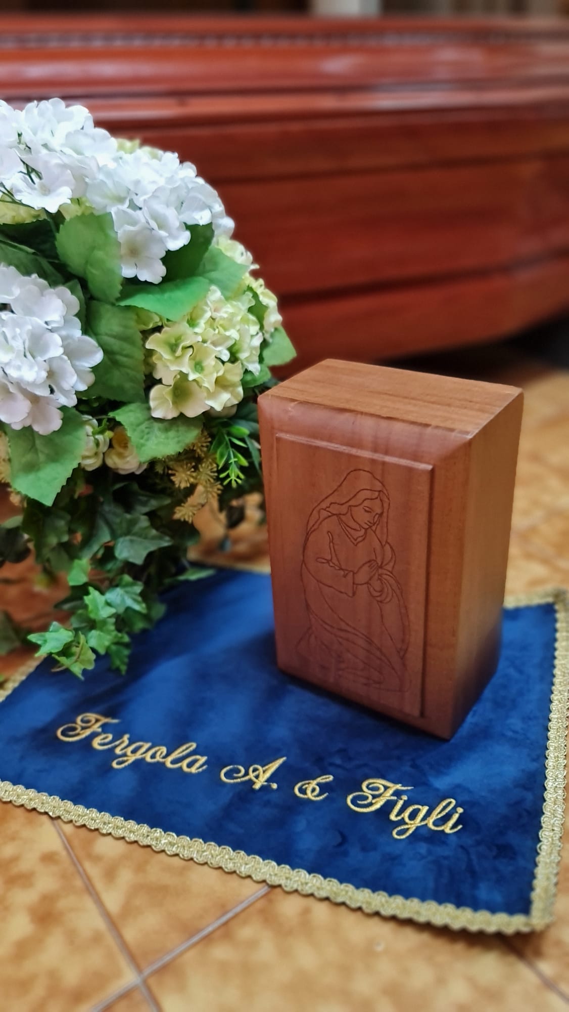 Dispongono di una vasta scelta di urne cinerarie, addobbi funebri, oggetti di arte sacra e realizza addobbi floreali secondo le volontà del defunto o dei suoi famigliari.